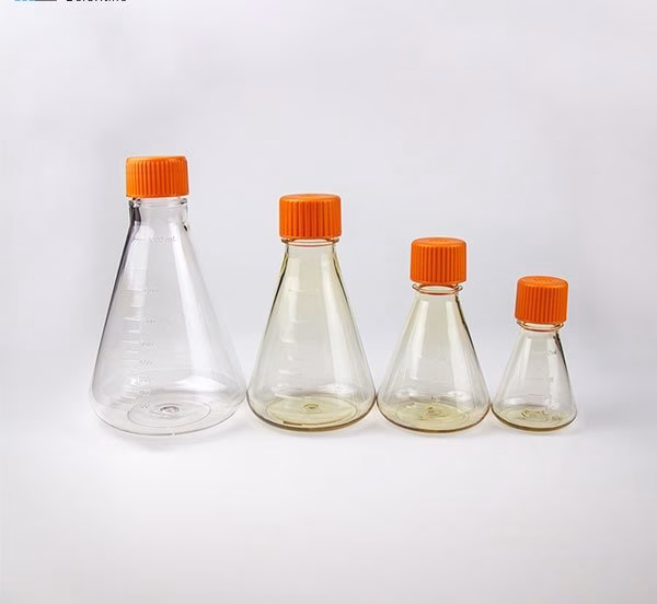 A conical culture flask is also called a shake bottle, which can be used for the preparation, mixing, and storage of culture medium. Its distinctive conical shape with a flat bottom and narrow neck makes it ideal for mixing, growing, and observing cell cultures. The design helps prevent spills and reduces contamination risks during culture manipulations.
